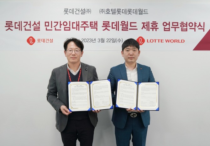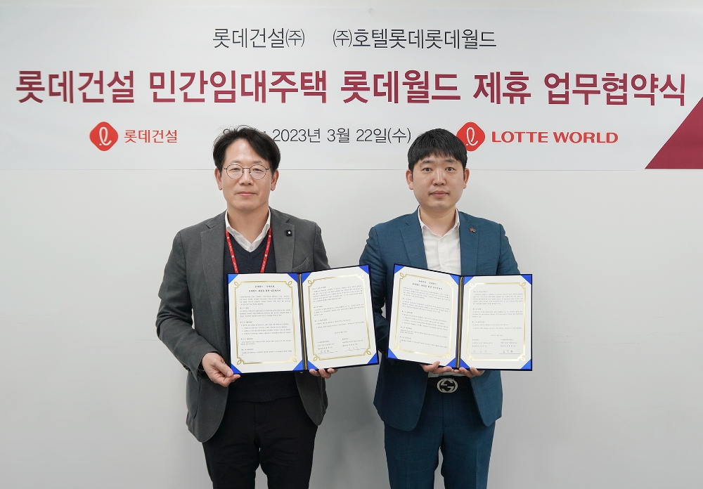 이미지 확대보기협약식에는 롯데건설 자산운영서비스팀 손승익 팀장과 롯데월드 마케팅1팀 김정환 팀장이 참석했다.