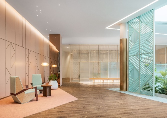 래미안 유니버스는 2022년 9월 리뉴얼한 래미안갤러리의 5층 공간으로 영상관과 주거체험관·라운지 공간으로 구성돼 있다. 세계적인 디자이너 파트리시아 우르퀴올라와 쏘노리 이희진 대표가 디자인에 참여했으며 다채로운 컬러와 개성 있는 마감재를 사용해 독특한 주거 공간을 구현했다.