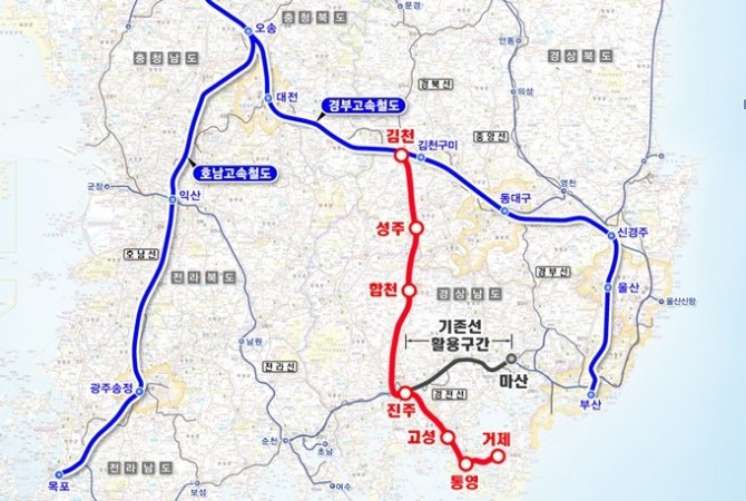 사업이 완료되면 서울·수서∼거제·마산까지 환승 없이 직결 운행이 가능해진다. 서울∼진주까지 이동시간이 고속열차 기준으로 1시간 18분 정도 단축된다. 거제까지는 2시간 34분이면 도착할 수 있다.