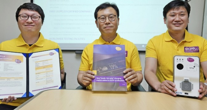 이미지 확대보기한국전기연구원(KERI)은 이재조 박사팀이 개발한 '전기차 충전용 과금형 콘센트 기술'이 전기차 개방형 통신규약(OCPP) 2.0.1 인증을 받았다고 29일 밝혔다.