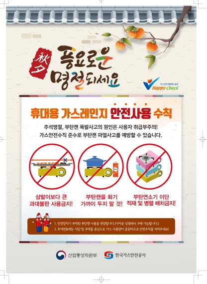 이미지 확대보기29일 가스안전공사는 가스사고예방을 위해 국민 모두가 쉽고 간단하게 지킬 수 있는 안전 수칙을 발표했다. 추석 연휴 야외활동이 늘면서 음식 조리 등으로 가스 사용량이 증가하기 때문이다.