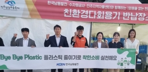 남동발전은 지난달 20일 한국수자원공사, 진주문화예술재단, 진주자활센터 등과 진주 대표축제에 ‘1회 용기 없는 친환경 축제만들기’를 위한 업무협약을 체결했다.