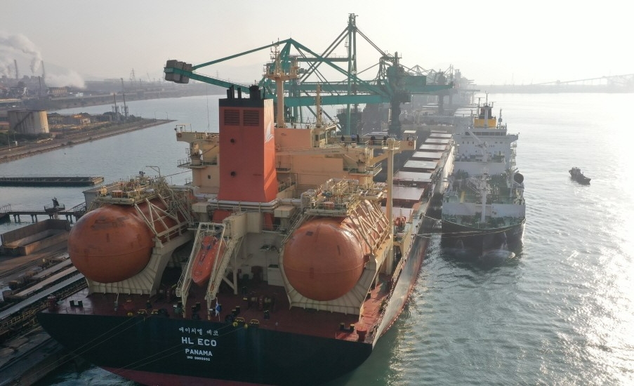한국엘엔지벙커링㈜은 통영 생산기지에서 LNG 벙커링 전용선 ‘블루웨일호’에 LNG를 싣고 이동해 광양제철소 원료부두에서 하역 중이던 HL-에코호에 약 1000톤t의 LNG를 ‘선박 대 선박(STS·Ship to Ship)’ 방식으로 공급했다.