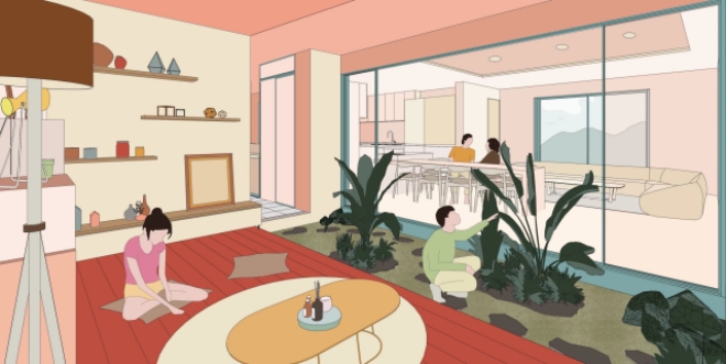 롯데건설은 아파트 설계 전문가 집단과 공동 연구를 통해 MZ세대를 겨냥한 새로운 주거 평면을 공개했다.