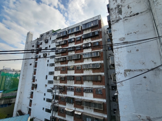 이미지 확대보기9일 방문한 회현제2시민아파트에는 사람이 살고 있지 않는 듯한 적막함이 감돌고 있었다. 시민아파트는 중산층을 위한 현대식 공동주택 보급을 목적으로 한 시범아파트와 달리 당시 13만 가구 넘게 불어난 무허가 주택(판잣집)을 철거하고 주민들을 이주시키기 위해 정부 차원에서 건설된 아파트다.