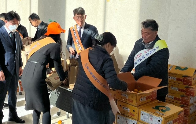 이미지 확대보기농어촌공사는 13일 공사 본사에서 제주도 농업인단체협의회와 ‘감귤 홍보 행사’를 진행했다고 밝혔다.