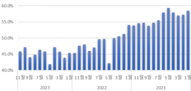 전세 비중 50% 이하↓…월세 전세 추월 20개월 이어져