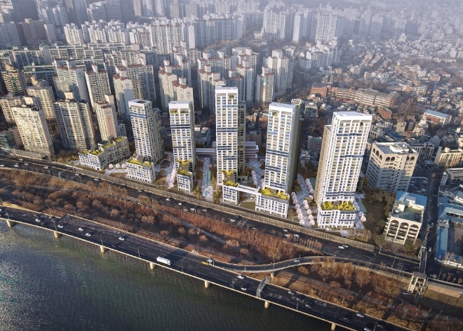 지난 1977년 지어진 용산 산호아파트는 기존 지상 최고 12층, 6개 동, 554가구를 헐고 새로 지상 최고 35층짜리 7개 동, 647가구로 재건축될 예정이다.