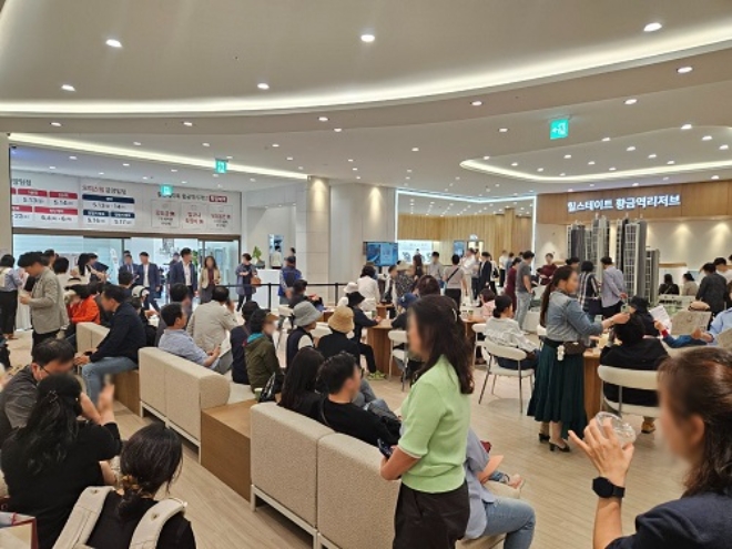 이미지 확대보기7일 분양업계에 따르면 대구광역시 수성구 황금동 일원에 마련된 ‘힐스테이트 황금역리저브’ 견본주택은 이른 아침부터 관람을 위한 수요자들이 몰려들었다. 내부에 마련된 상담석에는 청약과 분양조건 등 구체적인 상담을 받으려는 수요자들로 인해 대기 줄이 형성되는 모습을 보였다.