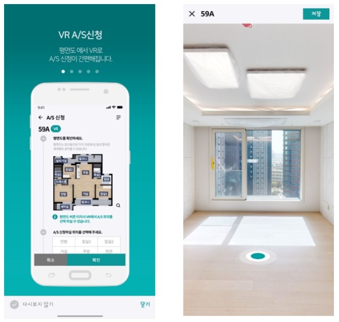 입주 고객은 VR을 통해 동일한 평형의 내부 전경을 실물처럼 둘러볼 수 있고, 가구 배치나 인테리어를 위해 원하는 부위의 길이 측정도 가능하다. 특히 입주 전 세대 점검 시 보수가 필요한 부위를 터치해 간편하게 AS를 접수하고, 처리 후에는 완료 사진을 통해 결과까지 확인할 수 있다.