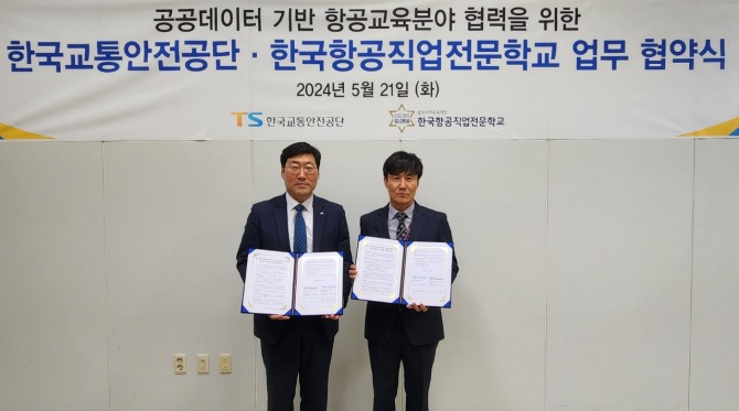 한국교통안전공단(TS)은 21일 국내 항공 조종사 양성 교육기관인 한국항공직업전문학교와 함께 ‘공공데이터 기반 항공교육분야 상호 협력에 관한 업무협약(MOU)’을 체결했다.
