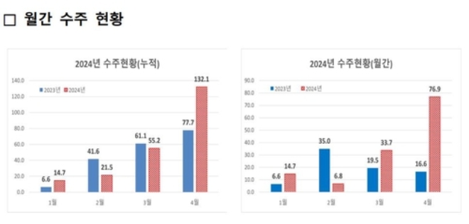 지역별로 보면 중동지역이 가장 큰 비중을 차지했다. 중동 국가 수주액은 같은 기간 99억8079만달러(한화 13조7396억원)로 전체의 73.2%에 달했다. 이는 전년 동기(14억9974만달러) 대비 6배 가까이(565.5%) 급등한 것이다.