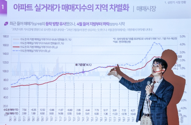 이미지 확대보기12일 한국건설산업연구원은 지난 11일 '2024년 하반기 건설·부동산 경기 전망 세미나'를 열고 내년도 전국 주택 매매가격에 대해 분석했다. 수도권의 주택 매매가격은 연간 -0.5%로 약보합인 반면, 지방은 -3.0% 하락할 것으로 예상된다.