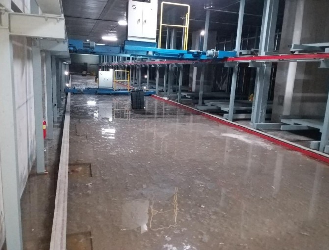침수가 우려되는 상황에서는 감전이나 누전 위험을 차단하기 위해 비상정지 버튼을 눌러 기계 작동을 중지시키고, 건물 메인분전반의 전원을 차단하여야 한다.