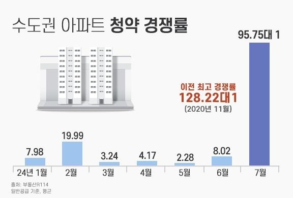 7월 수도권 1순위 청약 평균 경쟁률 95.75대 1