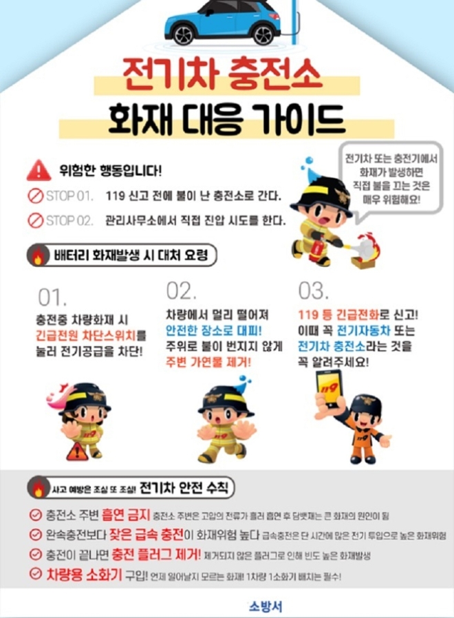 이미지 확대보기공사는 이번 점검을 통해 노후 충전 시설과 소화기․비상벨 등을 교체 및 수리하고, 충전시설 주변 인화물질 제거와 화재 등 비상상황을 대비한 유관기관 간 대응체계를 정비했다.