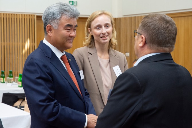 이미지 확대보기23일 업계에 따르면 대우건설 정원주 회장이 지난 19일 체코 트레비치를 방문해 지역협의체에 소방차를 기증하고 오찬 행사에 참석했다.