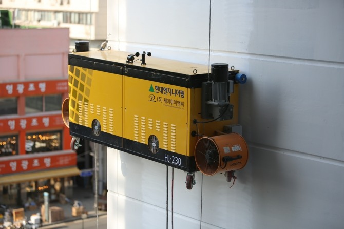 외벽도장로봇은 근로자가 달비계에 의존해 외벽도장을 진행하는 고위험작업을 대체해 안전을 확보할 수 있다.