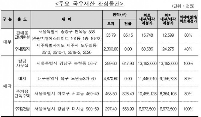 이미지 확대보기캠코(한국자산관리공사)는 이달 27일까지 총 481건의 국유부동산을 온비드를 통해 대부 및 매각한다고 26일 밝혔다.