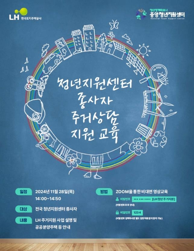 아울러 LH는 청년센터를 통해 이번 교육 내용과 청년층에 유용한 주거지원 프로그램 정보가 담긴 안내 책자를 배포할 계획이다.