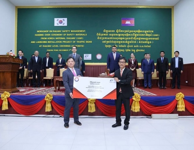 이미지 확대보기국가철도공단은 지난 3일(현지시각) 캄보디아 프놈펜 공공사업교통부에서 재사용이 가능한 안전물품 1000여개를 기부하고 철도 안전관리 기술을 설명하는 '안전물품 기부식 및 K-철도 안전기술 세미나'를 개최했다고 4일 밝혔다.