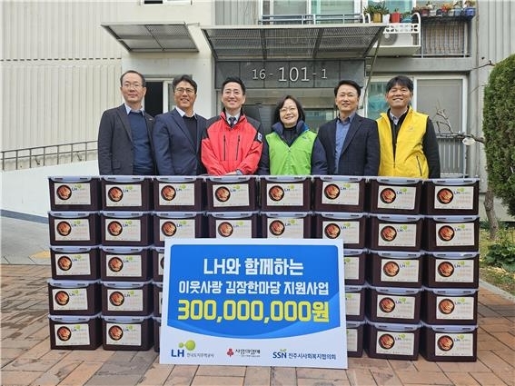 행사에는 조경숙 LH 경영관리본부장과 LH 나눔봉사단이 참석했으며, 약 800㎏의 김장 김치를 영구임대 단지 내 저소득 세대 160여 가구에 전달했다.