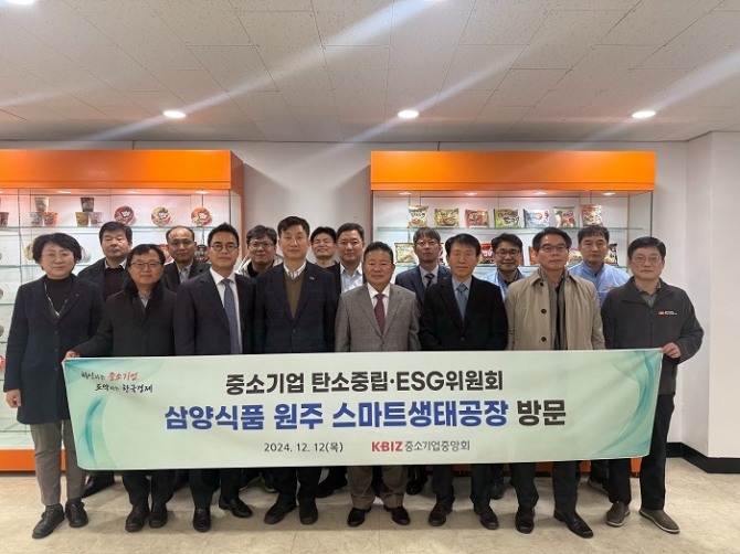 이미지 확대보기중소기업중앙회는 지난 12일 강원 원주시에 위치한 삼양식품 스마트생태공장을 방문해 '2024년도 제2차 중소기업 탄소중립·ESG 위원회'를 개최했다고 13일 밝혔다.