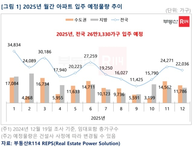 이미지 확대보기20일 부동산R114에 따르면 내년 전국 아파트 입주 예정 물량은 26만3330가구다.