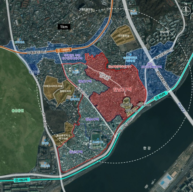 한남3구역은 한남동 686번지 일대 면적 38만6364㎡로 서울 재개발사업장 가운데 규모가 가장 크다.