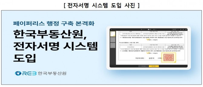 이미지 확대보기한국부동산원은 공공기관 디지털 대전환에 발맞춰 내부 ERP(Enterprise Resource Planning) 시스템 연계형 전자서명 서비스를 도입했다고 30일 밝혔다.