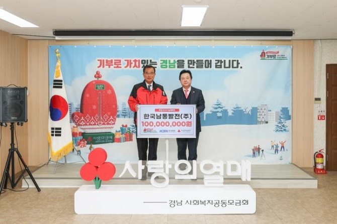 남동발전은 지난 30일 창원시 성산구 경남사회복지공동모금회에서 강기윤 한국남동발전 사장과 강기철 경남사회복지공동모금회 회장 등 관계자들이 참석한 가운데 ‘희망 2025 나눔 캠페인’ 성금 1억원을 기탁했다고 31일 밝혔다.
