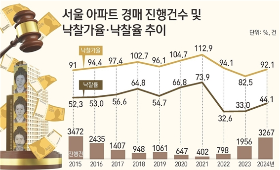 한편 지난해 서울 아파트 낙찰가율은 92.1%로 전년(82.5%) 대비 9.6% 상승했다.