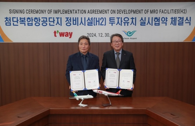 인천국제공항공사는 지난달 30일 공사 청사에서 티웨이항공과 첨단복합항공단지 신규 항공기 정비시설 투자유치에 관한 실시협약을 체결했다고 7일 밝혔다.
