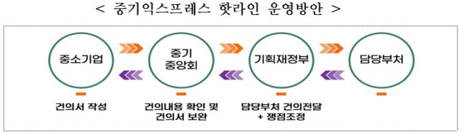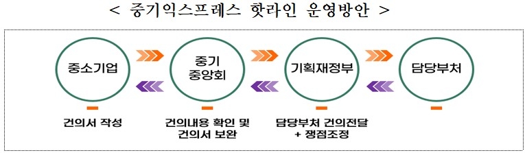 '중기익스프레스 핫라인'은 민관합동 온라인 플랫폼으로 이를 통해 중소기업·소상공인이 제안한 건의서 처리 과정을 투명하게 확인할 수 있고, 정부 부처 관계자는 30일 이내에 검토 결과를 회신한다.