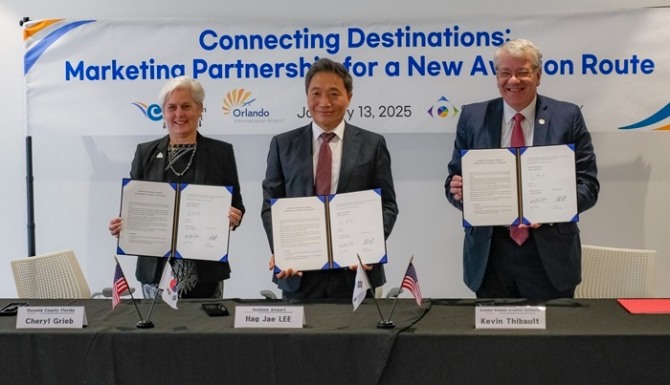 이와 관련해 지난 13일(현지시각) 미국 올랜도 현지에서 ‘인천-올랜도 신규노선 개설을 위한 마케팅 파트너십 협약 체결식’이 열렸다.