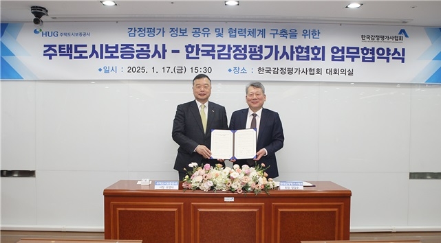 이미지 확대보기주택도시보증공사(HUG)는 한국감정평가사협회와 지난 17일 감정평가 정보교류를 위한 업무협약을 체결했다고 20일 밝혔다.