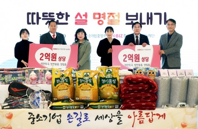 이미지 확대보기중소기업중앙회와 중소기업사랑나눔재단은 지난 21일 서울 여의도 중기중앙회에서 설을 앞두고 취약계층들이 따뜻한 명절을 보낼 수 있도록 아동·노인·장애인·노숙인 복지시설 관장들을 초청해 떡만둣국 5만2000명분과 방한용품, 생필품 등 2억원 상당을 전국 200여 복지시설에 전달했다고 22일 밝혔다.
