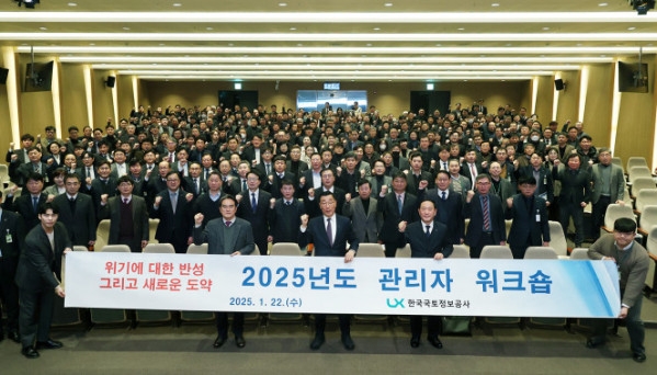 이미지 확대보기LX한국국토정보공사(LX공사)는 지난 22일 충남 공주시 국토정보교육원에서 250여 명이 참석한 가운데 2025년도 관리자 워크숍을 개최했다고 23일 밝혔다.