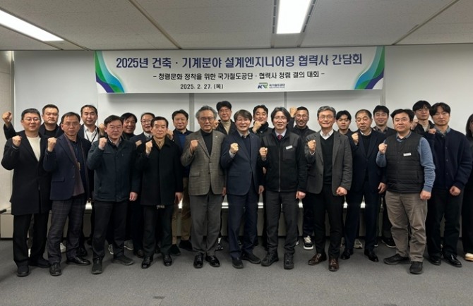 이미지 확대보기국가철도공단 SE융합본부는 2025년 발주계획을 공유하고 협력사와의 동반성장 방안을 논의하기 위해 지난 27일 대전 본사에서 ‘건축·기계 설계 엔지니어링 분야 간담회’를 개최했다고 28일 밝혔다.