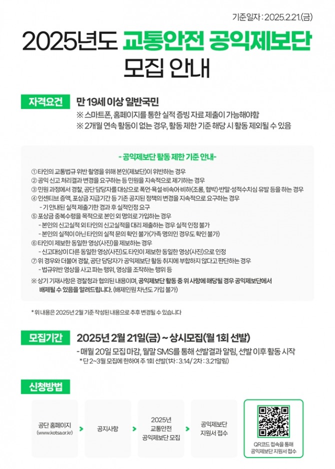 공익제보단은 상시 모집중이며(운영인원 초과 시 마감), 공단 홈페이지 및 QR코드를 통해 지원할 수 있다.