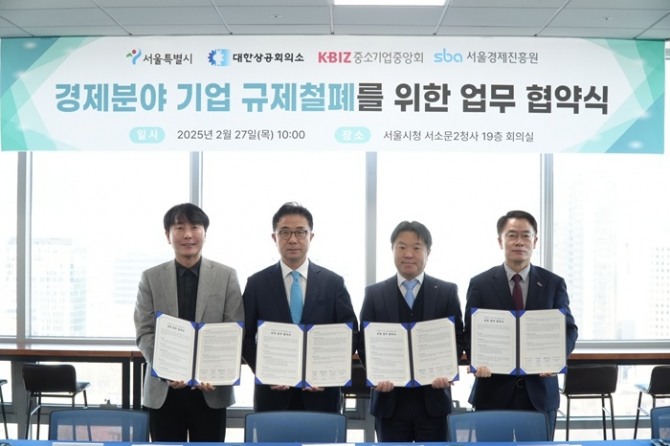 이들 4개 기관은 업무협약을 통해 서울시 소재 기업들의 혁신과 성장을 저해하는 불합리한 규제를 공동으로 발굴해 신속히 개선하는 데 중점을 두고 공동 협력체계를 구축키로 했다.