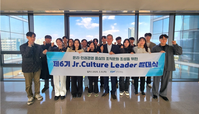 이미지 확대보기전력거래소는 지난 6일 나주 본사에서 윤리·인권경영 중심의 조직문화 개선을 위한 ‘제6기 KPX 주니어 컬처리더’ 출범식을 열었다고 12일 밝혔다