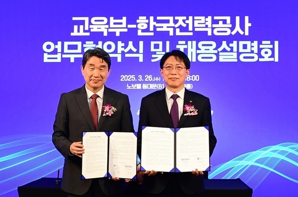 또한, 우수한 고졸 인재가 지원할 수 있도록 한전은 이날 교육부와협약식과 더불어 공동 채용설명회를 개최했으며 향후 교육부 ‘고졸만잡’ 시스템을 활용한 채용 홍보를 병행할 예정이다.