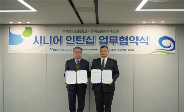 이미지 확대보기주택도시보증공사(HUG)는 지난 27일 서울 여의도 태흥빌딩에서 한국노인인력개발원과 시니어 인턴십 업무협약을 체결했다고 28일 밝혔다.