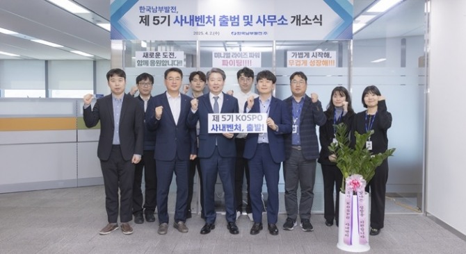 이미지 확대보기한국남부발전이 지난 2일 부산 남구 본사에서 제5기 사내벤처 출범 및 사무소 개소식을 개최했다고 3일 밝혔다.