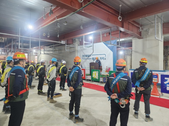 행사는 △중대재해근절 결의문 선언 △안전 우수근로자 포상 △중대재해 타파 기원 시축 △합동 현장 안전보건점검 순으로 진행됐다.