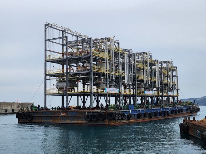 목포에서 제작된 PAU 모듈은 목포 대불항에서 선적된 후 남해를 따라 이틀간 470km를 운송해 울산 현장에 안전하게 설치됐다.
