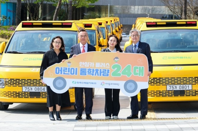 이미지 확대보기한국수력원자력이 지난 15일 경주 본사에서 '안심카 플러스' 차량 전달식을 열고, 전국 아동복지시설에 어린이 통학차량 24대를 전달했다고 16일 밝혔다.
