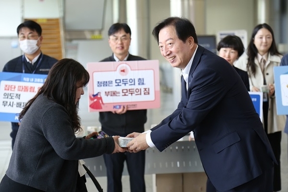 이미지 확대보기한국남동발전은 지난 16일 본사에서 임직원 및 협력사 직원들을 대상으로 '직장 내 괴롭힘 예방 및 정부지원금 부정수급 근절'을 위한 청렴캠페인을 진행했다고 17일 밝혔다.