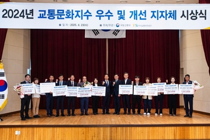시상 대상은 교통문화지수 그룹별 우수지자체(12곳)와 개선 우수 상위 지자체(3곳) 등 지자체 15곳이다. △30만 이상 시 1위는 강원 원주시 △30만 미만 시 1위는 충남 논산시 △군지역 1위는 충북 영동군 △자치구 1위는 인천 연수구 △개선지자체 1위는 서울 강서구가 각각 수상의 영예를 안았다.